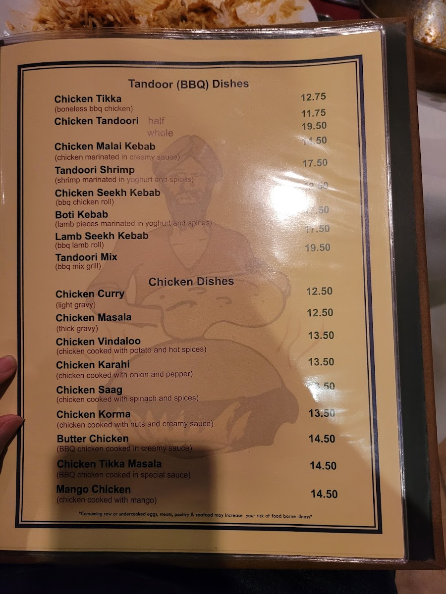 marinated chicken tender with garam masala , onion cook with tomato, chill or paprika, Fenugreek powder, mustard seeds, cumin salt black pepper ,heavy cream etc